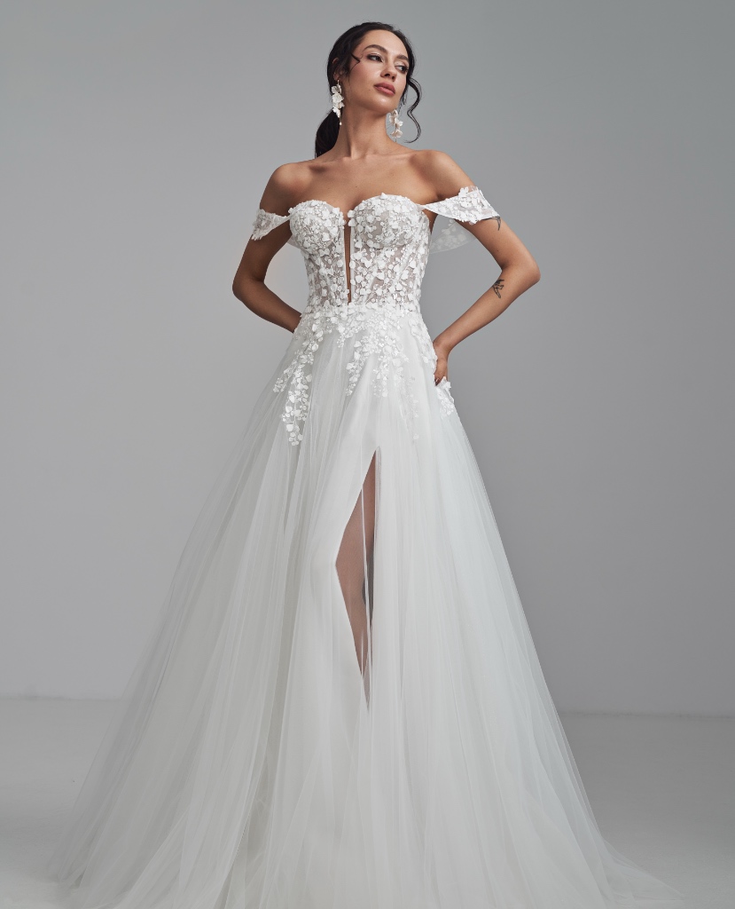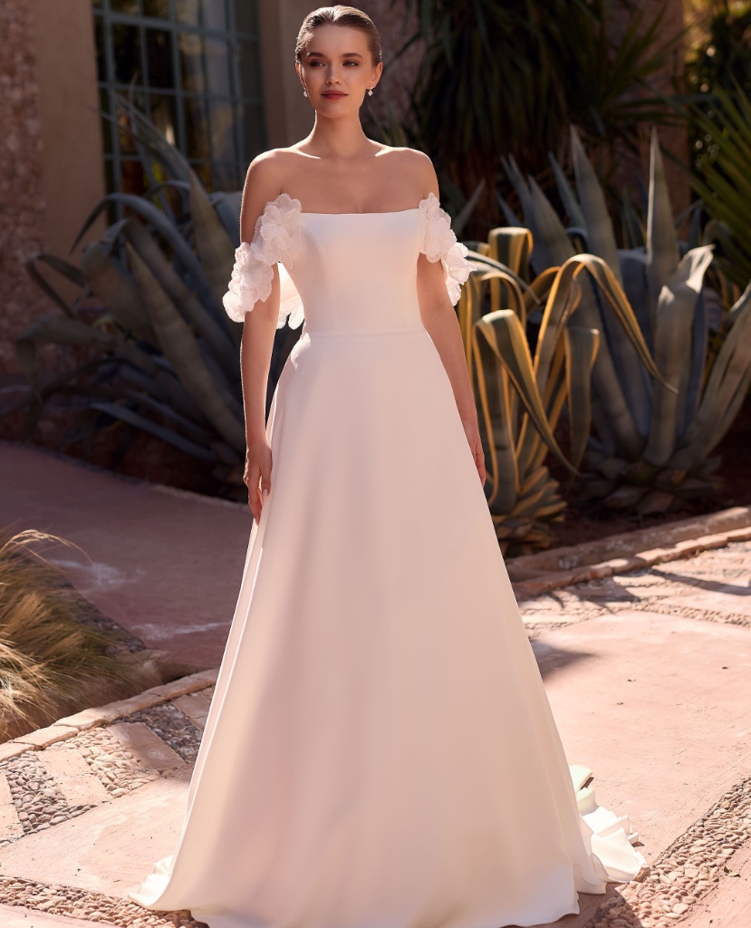 Die A-Linie ist der Klassiker unter den Brautkleidern, ob in Tüll oder Chiffon es steht jeder Braut.