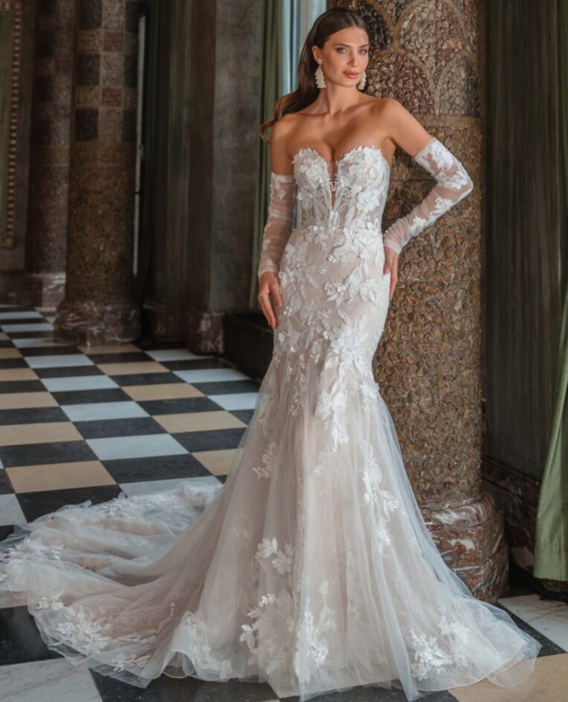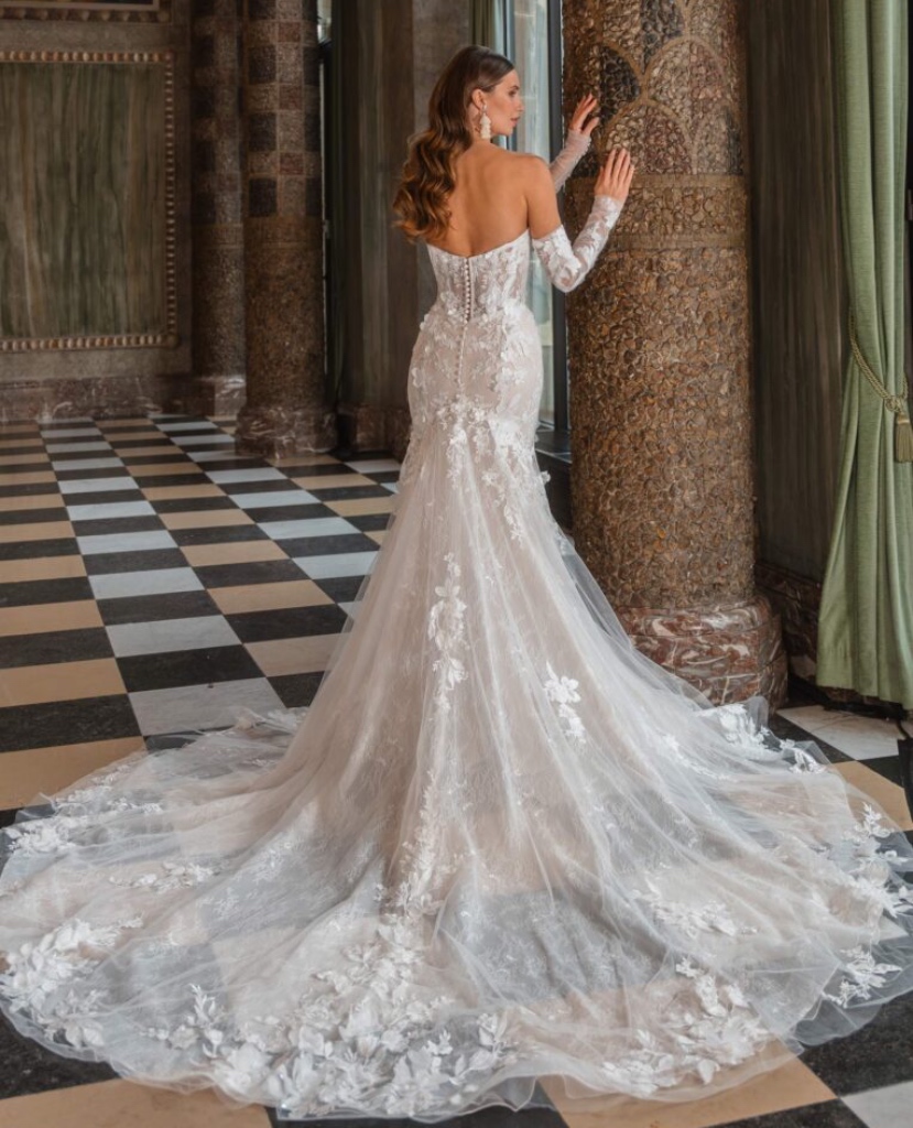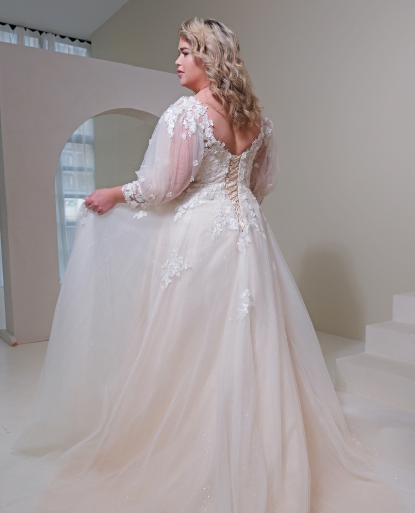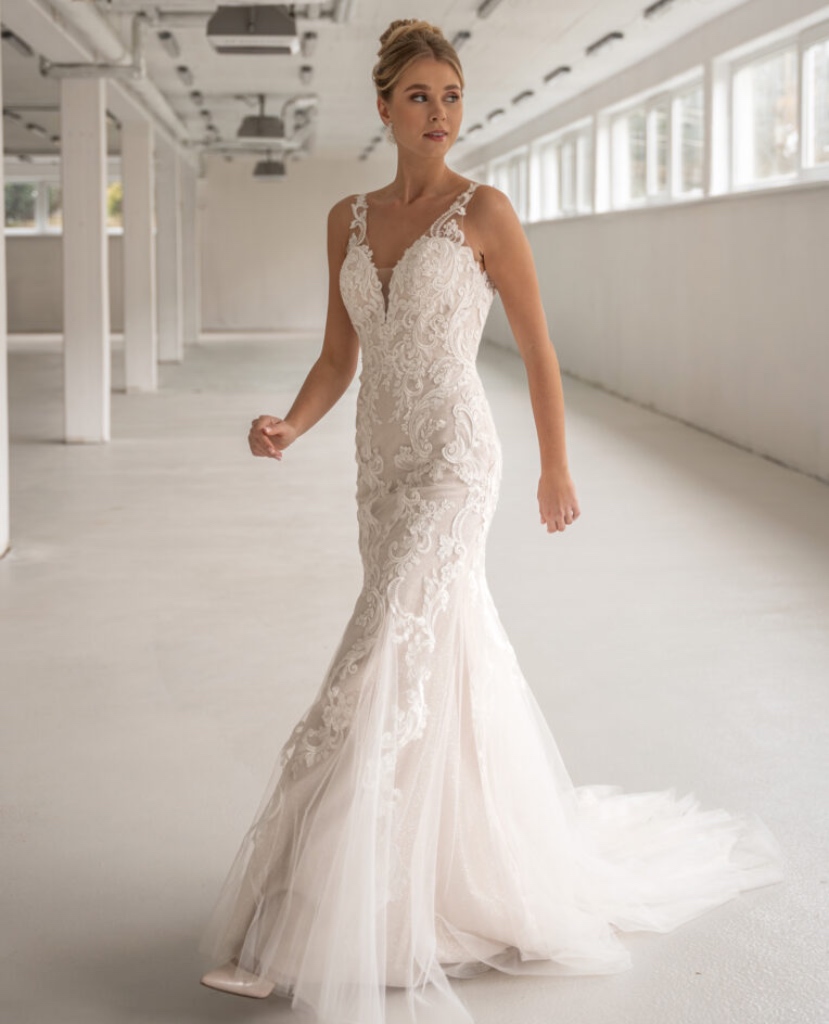 Jedes Brautkleid lässt sich nach deinen Wünschen anpassen – ob Schleppe, Ausschnitt oder Glitzerdetails.